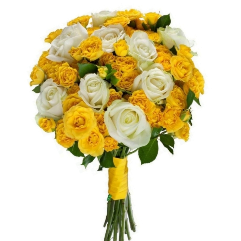 Букет для невесты из желтых и белых роз
