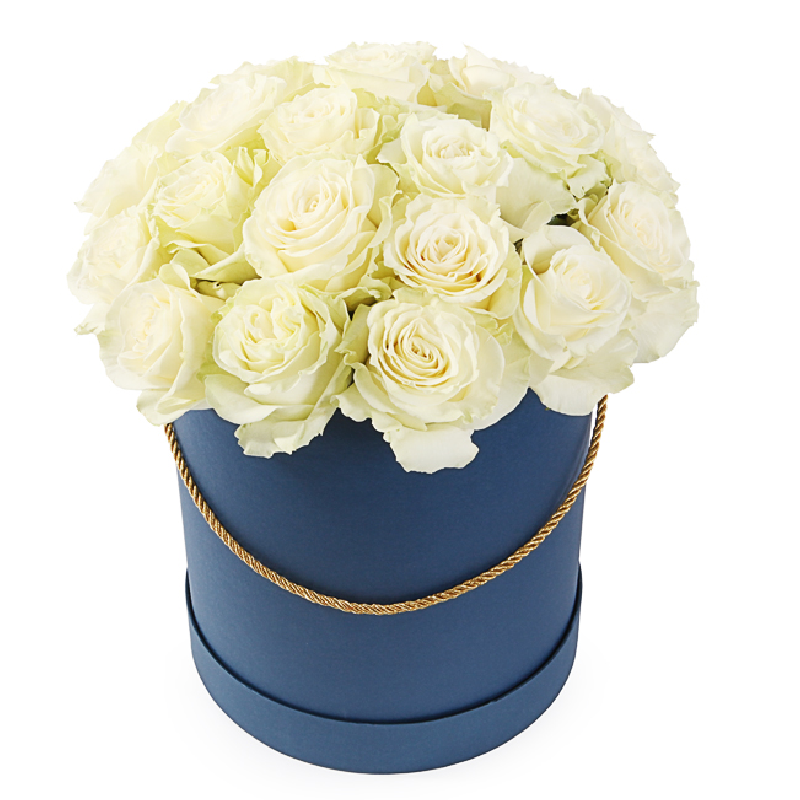 Букет состоит из 25 белых роз, коробка.